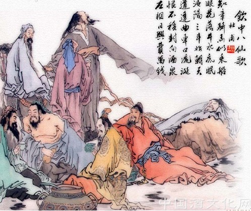 雖然歷史上沒有這“飲中八仙”齊聚一堂的明確記載,但盛唐時各種酒會盛行一時,參與者甚眾。這“飲中八仙”,都是當時的名人,或同朝為官,或詩文相交,或意氣相投,我們知道,名人一向喜歡扎堆,他們八個聚在一次酒局的可能性就非常大。所以,大路堅信他們必聚在一起飲過酒,而且還不只一次,當然參與者可能還有些其他人。這種聚會,可能在白天,也可能在夜晚;可能在秋雨綿綿中舉杯把盞,也可能在春雷陣陣里開懷痛飲??傊?,如果你不能證明他們沒在一起過,那你就要相信大路的說法,曾經有過這么一次瀟灑快活的神仙酒局,杜甫用詩把這種場面記錄下來并傳于后世。