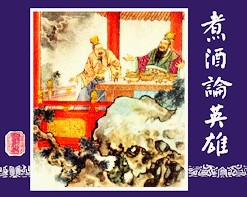 二人以青梅下酒,酒正酣時,天邊黑云壓城,忽卷忽舒,有若龍隱龍現。曹操說:“龍能大能小,能升能隱;大則興云吐霧,小則隱介藏形;升則飛騰于宇宙之間,隱則潛伏于波濤之內。方今春深,龍乘時變化,猶人得志而縱橫四海。龍之為物,可比世之英雄。玄德久歷四方,必知當世英雄?!辈懿賹嵞瞬皇莱龅慕^頂人物,這一番話,看似描述龍之變化,目的是說“人得志而縱橫四?!薄o@然,這是他的一番自我剖白,借物詠志。當然他也下了一個套,試探在劉備眼里,什么人能縱橫四海,比得上我曹操。劉備接連指出袁術、袁紹、劉表、孫策和劉璋等地方豪強,都被曹操一一否決。劉備這個回答應該給滿分,因為當時是個人都會如此回答。這樣曹操也就認為劉備見識一般,和常人無異。接著曹操給出了當世英雄的標準,他說,“夫英雄者,胸懷大志,腹有良謀,有包藏宇宙之機,吞吐天地之志者也?!眲淅^續裝傻,問:“誰能當之”曹操指了指劉備,后指了下自己,說:“今天下英雄,惟使君與操耳!”當時天雨將至,雷聲大作。劉備裝作受了驚嚇的樣子,筷子掉到了地上:“一震之威,乃至于此?!辈懿傩χf:“丈夫亦畏雷乎”劉備說:“圣人迅雷風烈必變,安得不畏”將內心的驚惶,巧妙的掩飾過去了。
